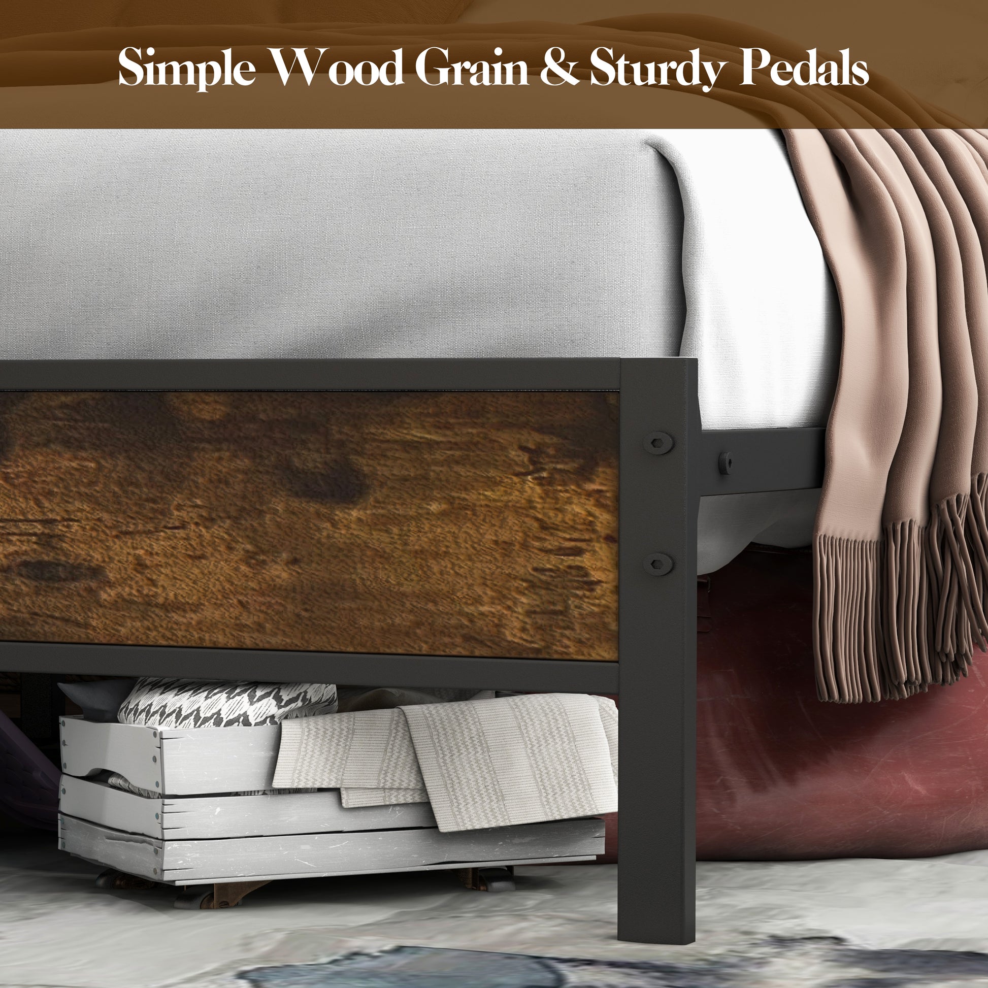【Sturdy and Stable】Crafted with a solid metal slats support system, this bed frame provides excellent stability and durability for long - Can withstand up to 800 pounds of weight. Rest peacefully knowing that your bed is secure and able to withstand daily wear and tear.